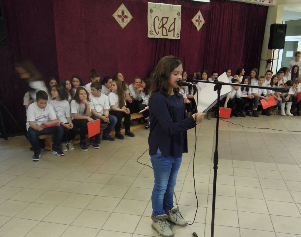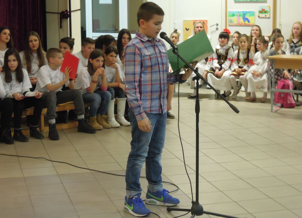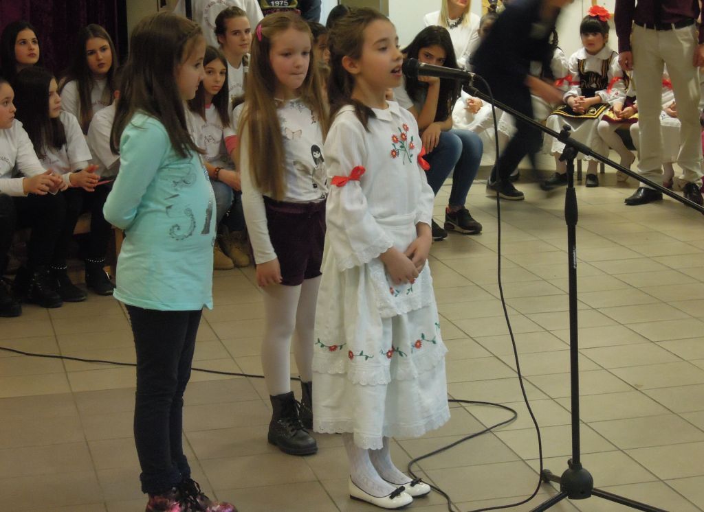Свечани програм водила је Ања Ковачевић, ученица петог разреда. Колаж програм чиниле су рецитације и драмске тачке, а зачиниле су га нумере школског хора, којим је дириговала наставница музичке културе Јелена Радоички.