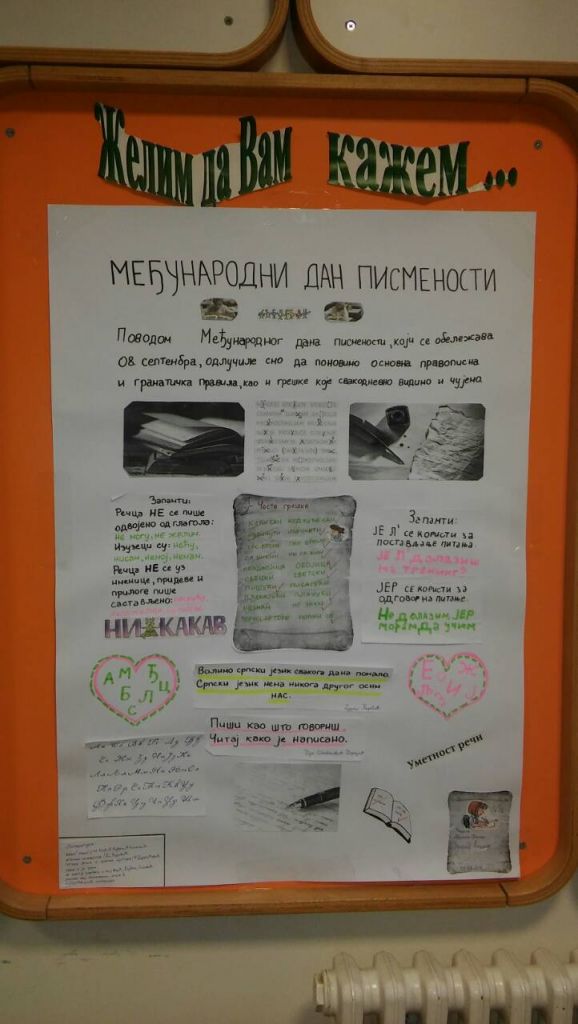 Другу годину за редом, ученици ОШ „Марија Трандафил“ обележавају Светски дан писмености, 8.9.2017. Учесници ове активности били су ученици виших разреда. У одељењима 5. разреда, овај дан симболично се обележио на часовима српског језика и књижевности и наставном јединицом „Велико слово“, ученици 7. разреда писали су правописни тест, док су ученици 8. разреда, у групама, радионичарски, подсетили на најважнија правописна правила. Као резултат рада настали су радови, креативни подсетници најважнијих језичких законитости. Радови су изложени у холу приземља школе, као и испред кабинета за српски језик и књижевност.