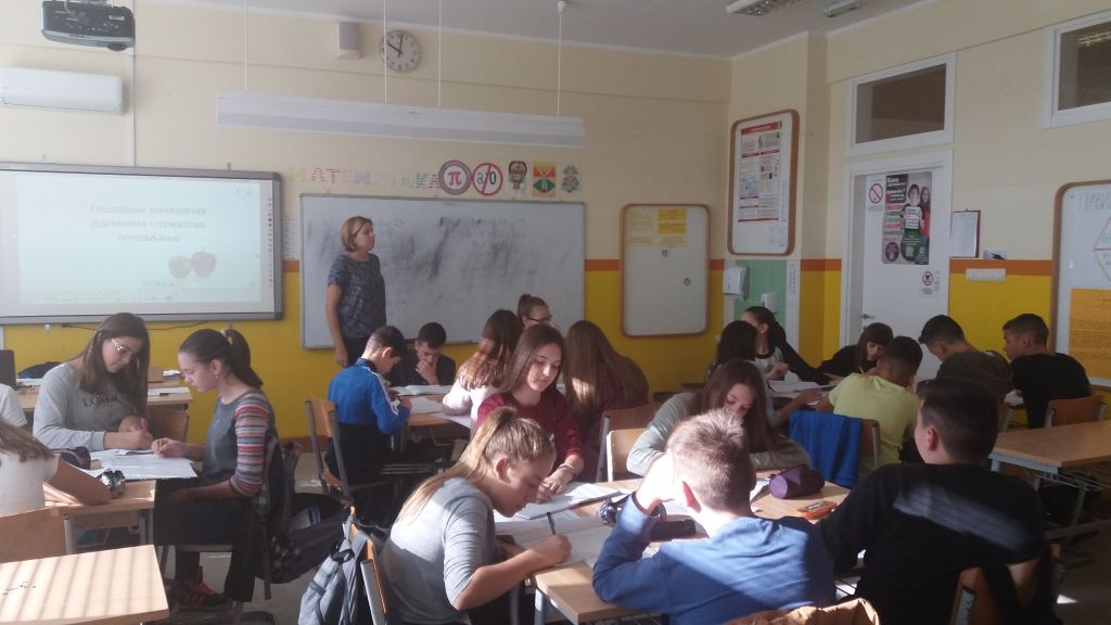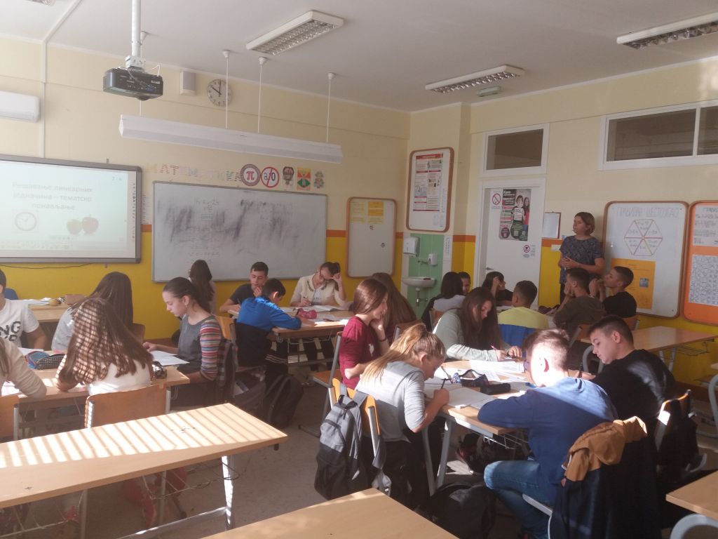 Данас, 20.10.2017. године у одељењу 8-2 наставница математике Вишња Ацкета одржала је огледни час. Тема часа је била „Линеарне једначине“, ученици су подељени у 4 групе решавали једначине, а потом представили своја решења. Након упознавања са историјом и правилима игре Судоку, ученици су решења једначина унели у празан Судоку квадрат. У последњем делу часа ученици су решавали Судоку, математичку загонетку која наставним планом није предвиђена. Час је протекао у радној и такмичарској атмосфери, и реакције ученика су биле позитивне.