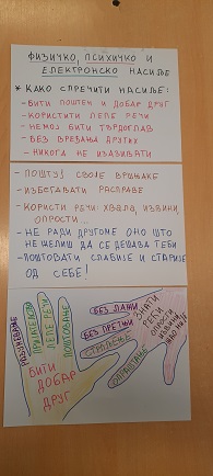 У среду, 24.02.2021. године, ученици од 1-4. разреда су реализовали превентивне активности- радионице, у којој су се подсетили које врсте насиља постоје и како треба реаговати на насиље. Ученици од 5-8. разреда су у сарадњи са одељењским старешинама и наставницама информатике, израђивали презентације и филмиће о насиљу и начинима спречавања. Филмићи су емитовани на великом одмору у холу школе и прослеђени свим одељењским старешинама као ученички продукт рада у превентивним активностима Тима за заштиту, а који се касније користи на часовима одељењског старешине.
