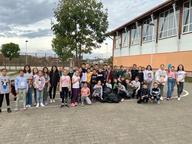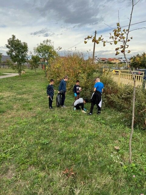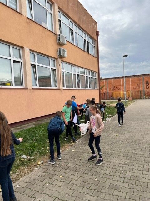 Одељења 4-3 и 4-4 су чистили школско двориште 03.11.2023. године.