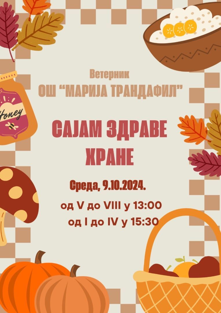 09.10.2024. у нашој школи се одржава други Сајам здраве хране у организацији ученика и запослених у ОШ “Марија Трандафил”