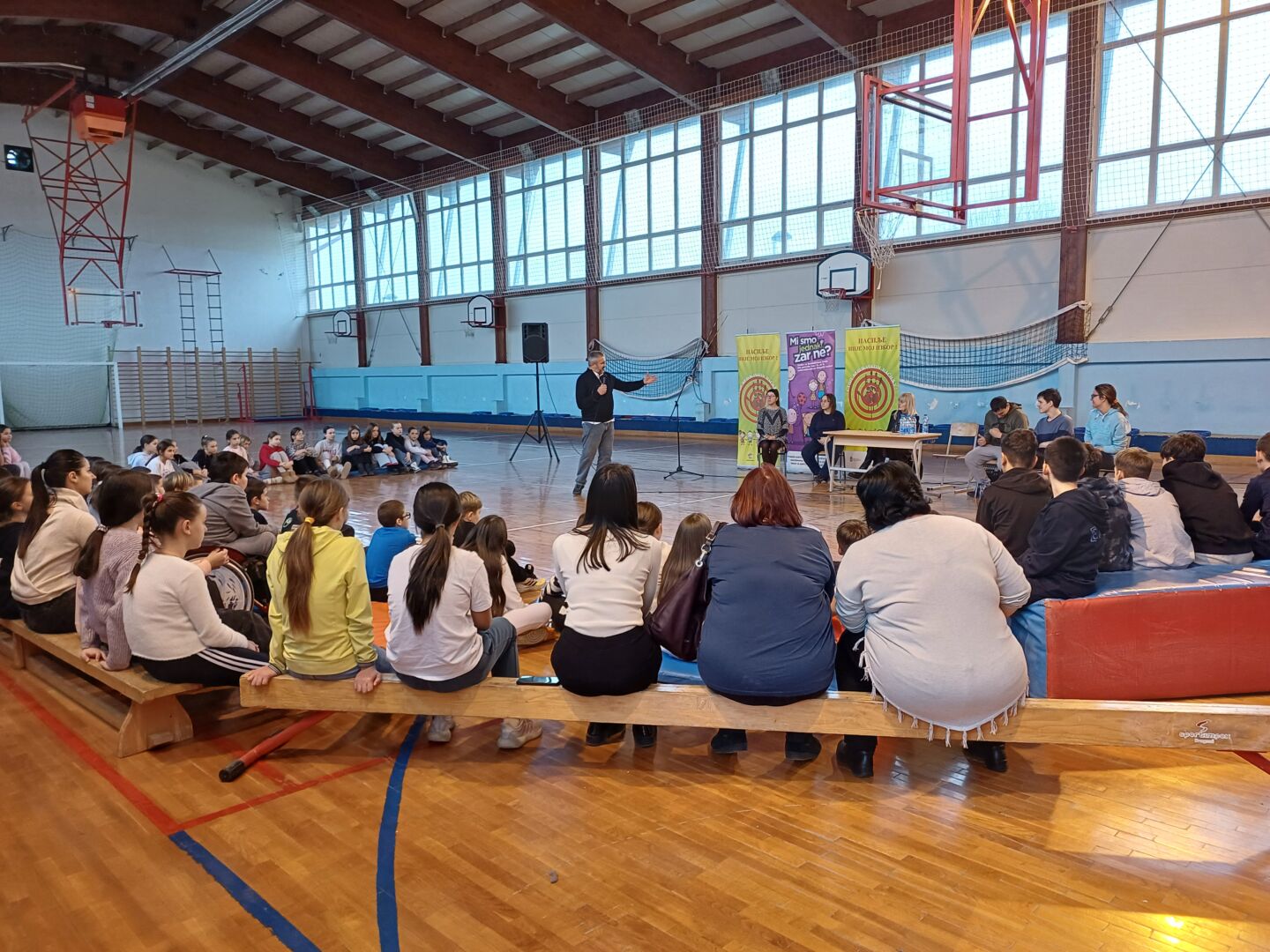 У петак, 13. децембра, ученици шестог разреда присуствовали су трибини “Насиље није мој избор”, коју је реализовао инклузивни хор “Исон” под вођством Мише Близанца и удружење грађана “Вера, љубав, нада”. Циљ пројекта у оквиру којег је организована трибина јесте препознавање различитих облика насиља, подршка жртвама вршњачког насиља, као и повећање нивоа толеранције према особама са инвалидитетом.